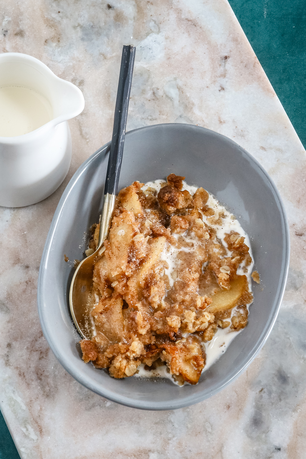 Refrigerate: Store cooled apple crumble in an airtight container for up to 3 days. Keep the topping loosely covered to prevent it from softening too much.