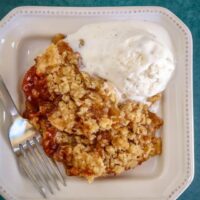 Apple crisp makes a fantastic Thanksgiving or Christmas dinner dessert, too. If you don’t have time or patience to fuss with a pie crust, make a crisp instead! It’s so much easier, and everyone loves an apple crisp.