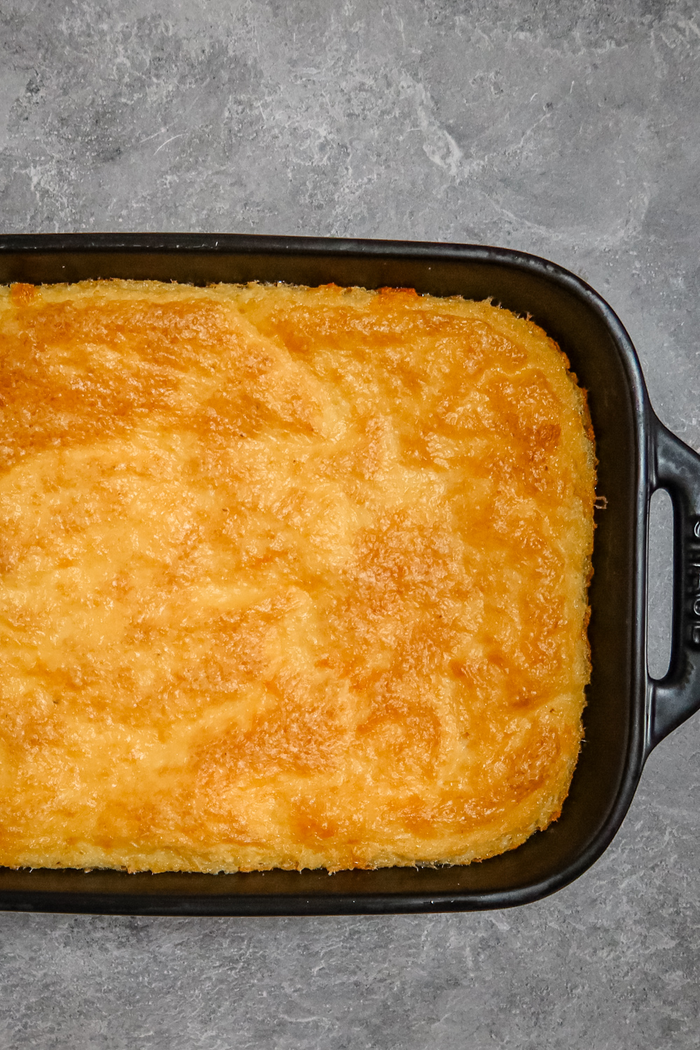 Baked until golden and set, this casserole-style dish is creamy on the inside with a hint of crust on top. It’s the ultimate comfort food — equally at home alongside eggs and bacon at breakfast or paired with barbecue, chicken, or shrimp at dinner.