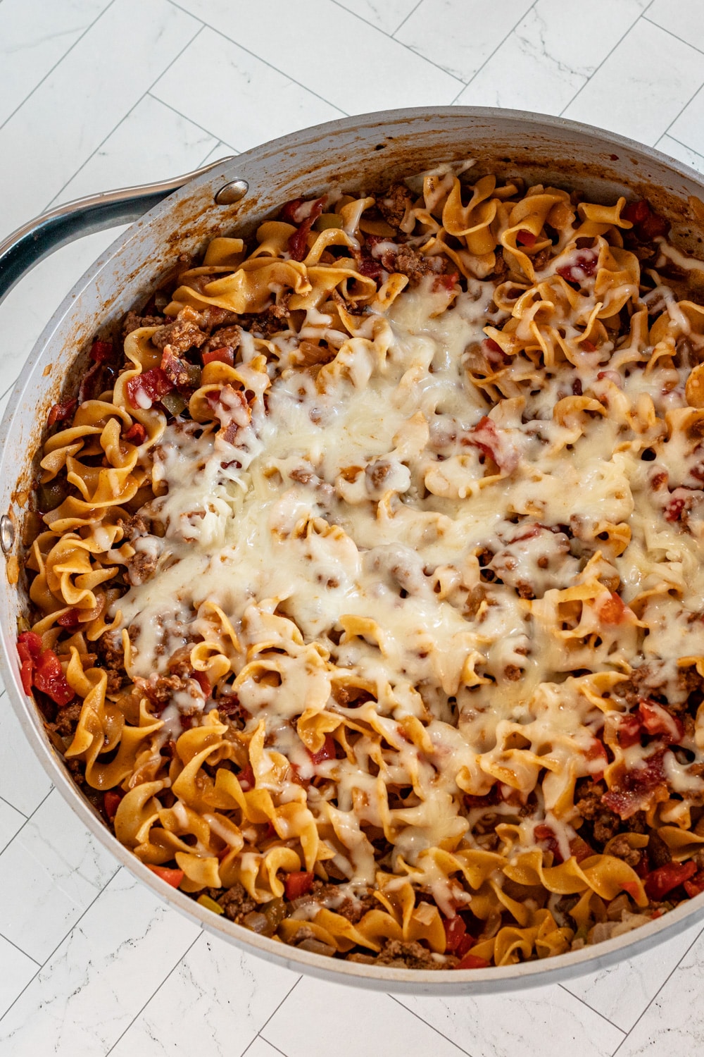 - Make it extra cheesy. Use the full 2 cups of mozzarella and stir a handful directly into the skillet before sprinkling the rest on top. This gives the noodles a creamy, cheesy coating similar to a baked casserole, just without turning on the oven.