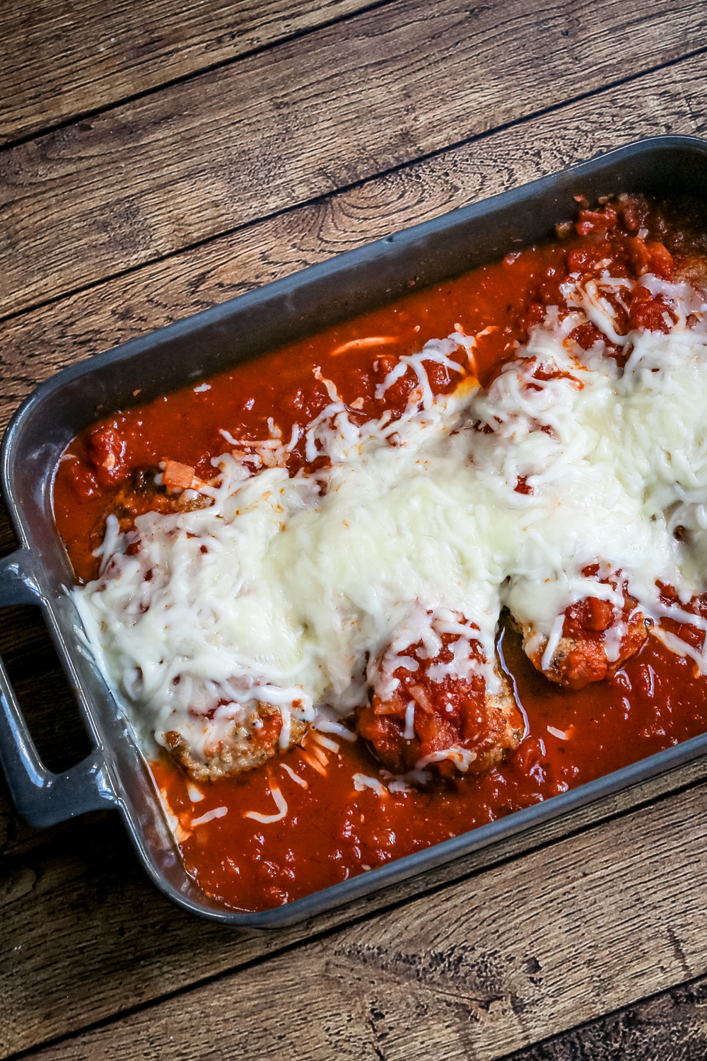 - Easy to prep ahead. You can bread and bake the chicken earlier in the day (or even the day before), then add the sauce and cheese and finish it in the oven right before serving.