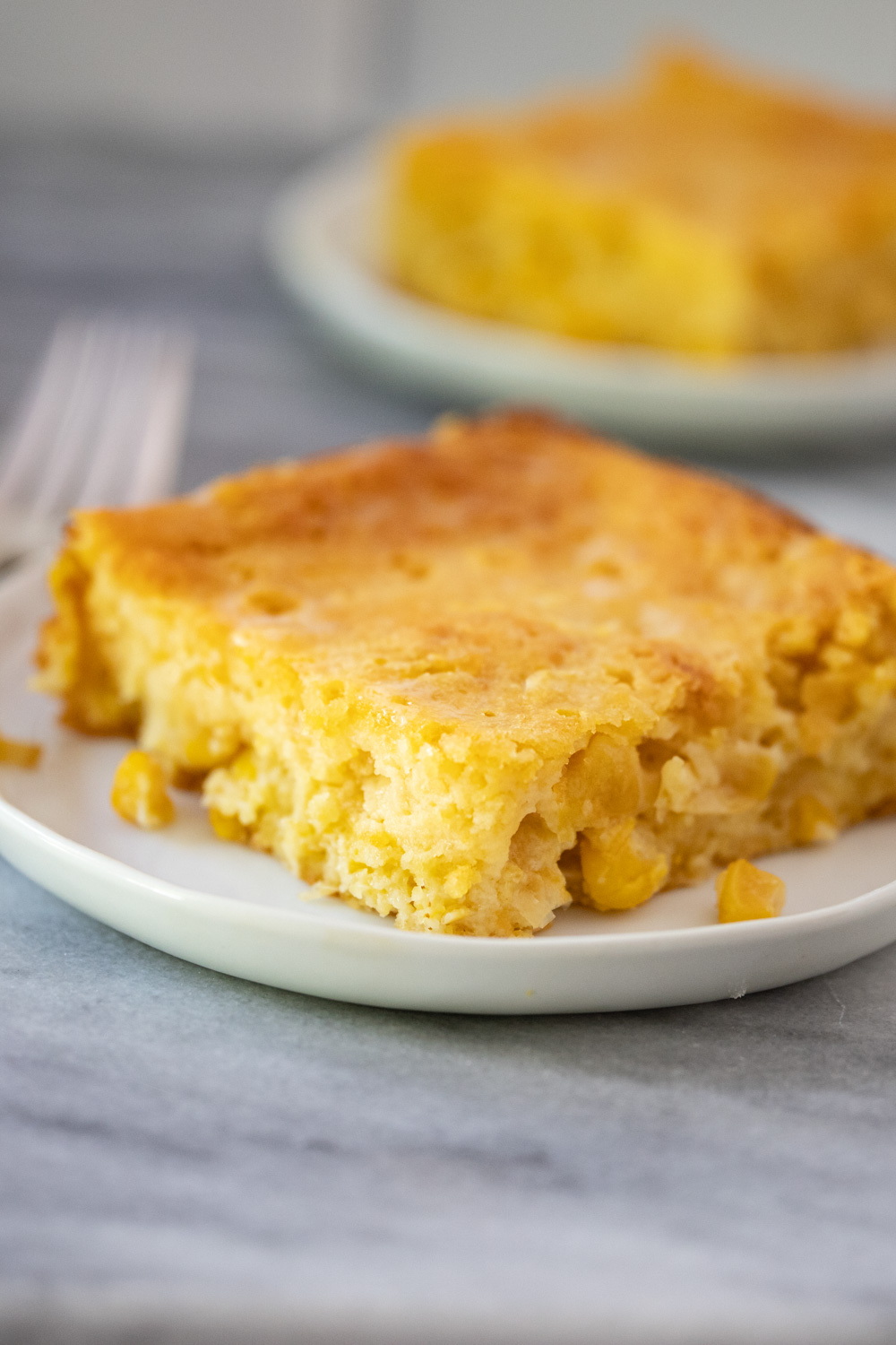- Moist and tender texture. The combination of sour cream, butter, and the two corn varieties keeps the casserole soft, almost custard-like around the edges, with enough structure to hold its shape when sliced.