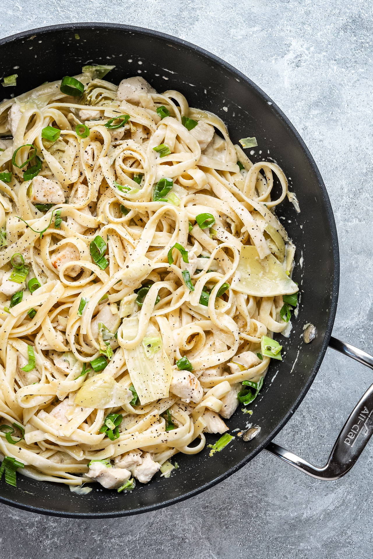 Artichoke hearts add a touch of elegance and a gentle tang, while green onions provide freshness and color. It’s all made in one skillet plus a pasta pot, making cleanup a breeze. Whether you serve it with a crisp salad or on its own, this pasta dish delivers comfort and flavor with every bite.