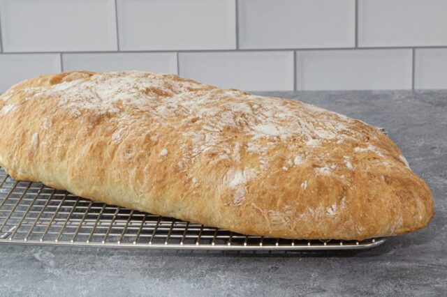 • Handle the dough gently — ciabatta’s airy texture comes from not overworking it.