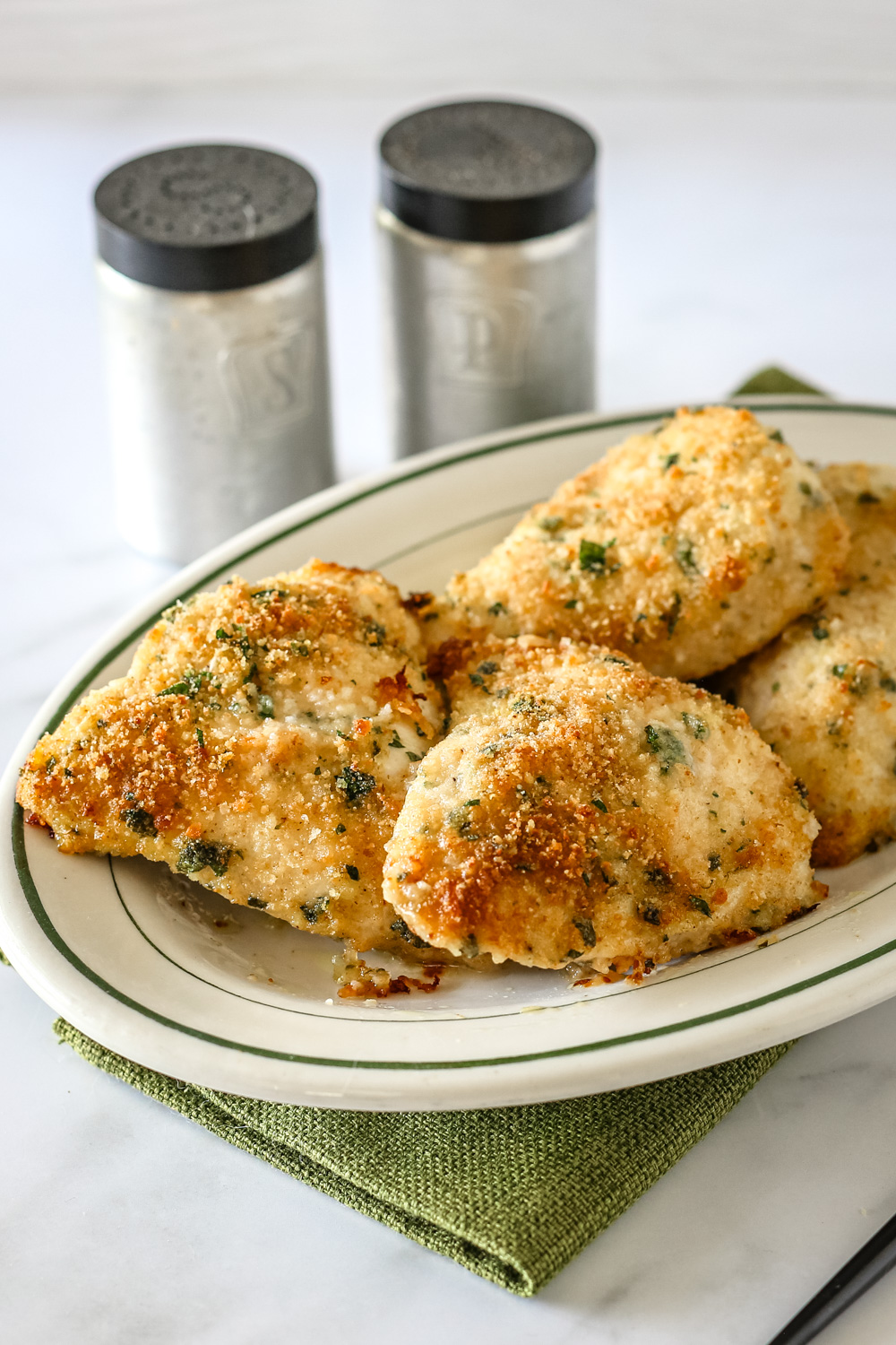 - Crispy, flavorful coating. The blend of breadcrumbs, Parmesan, parsley, and garlic butter creates a crunchy, savory crust that seals in moisture while adding rich, layered flavor.