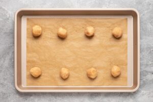 - Arrange the coated balls on parchment-lined baking sheets, spacing them about 2 1/2 inches apart. For extra control, you can chill the shaped cookies briefly in the freezer before baking.