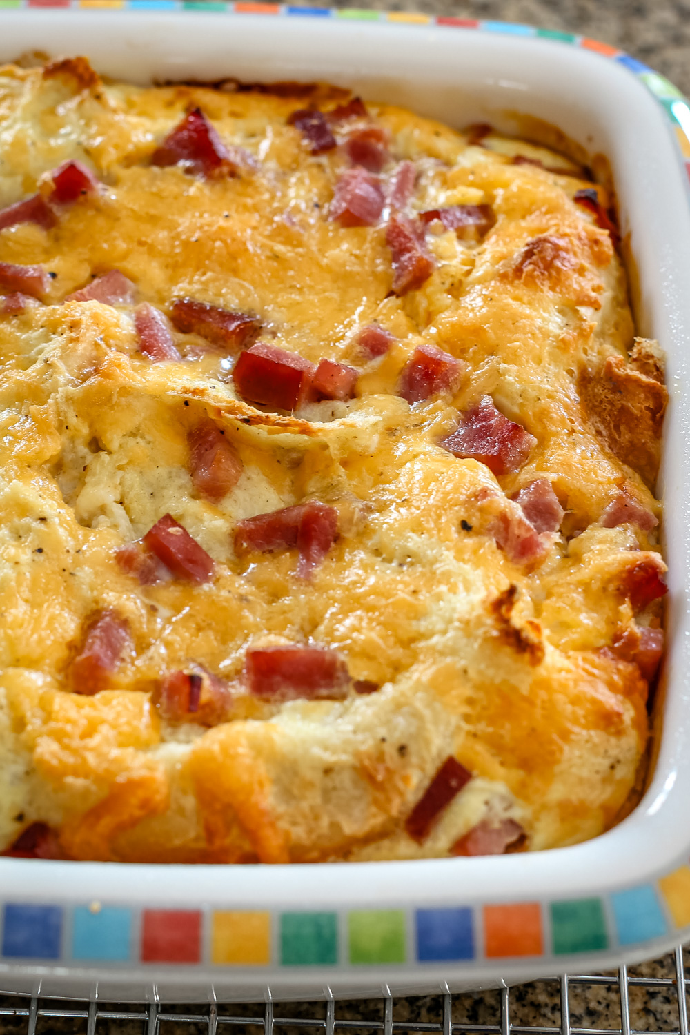 - Simple assembly. There’s no need for pre-cooking ingredients aside from the ham. The layers come together quickly, making this an approachable breakfast even on busy days.