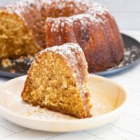 - Let the cake cool completely then dust with confectioners’ sugar, if desired.