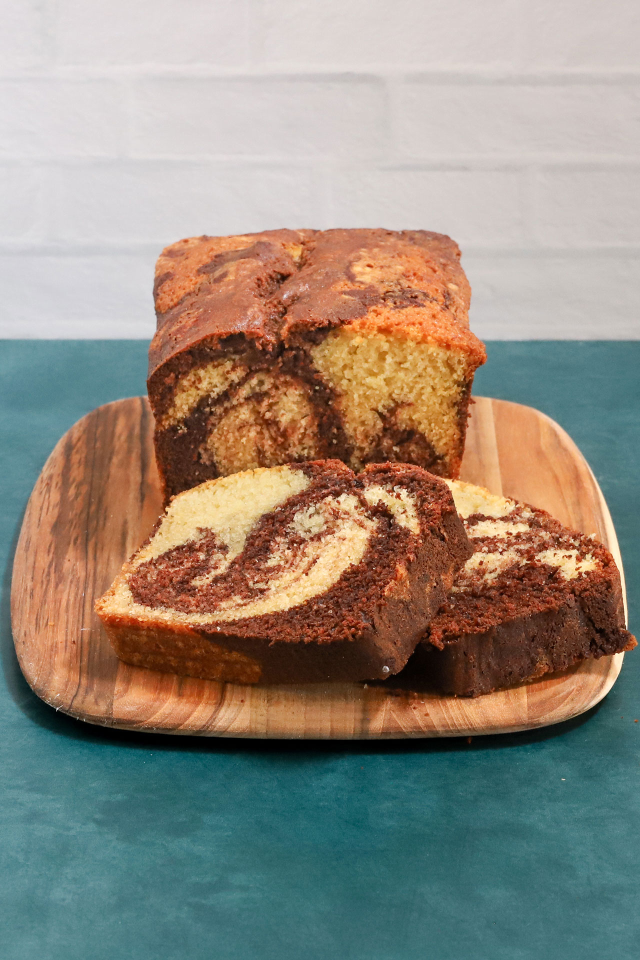 Experience a taste sensation with this marble pound cake. The combination of chocolate and vanilla creates a visual masterpiece.