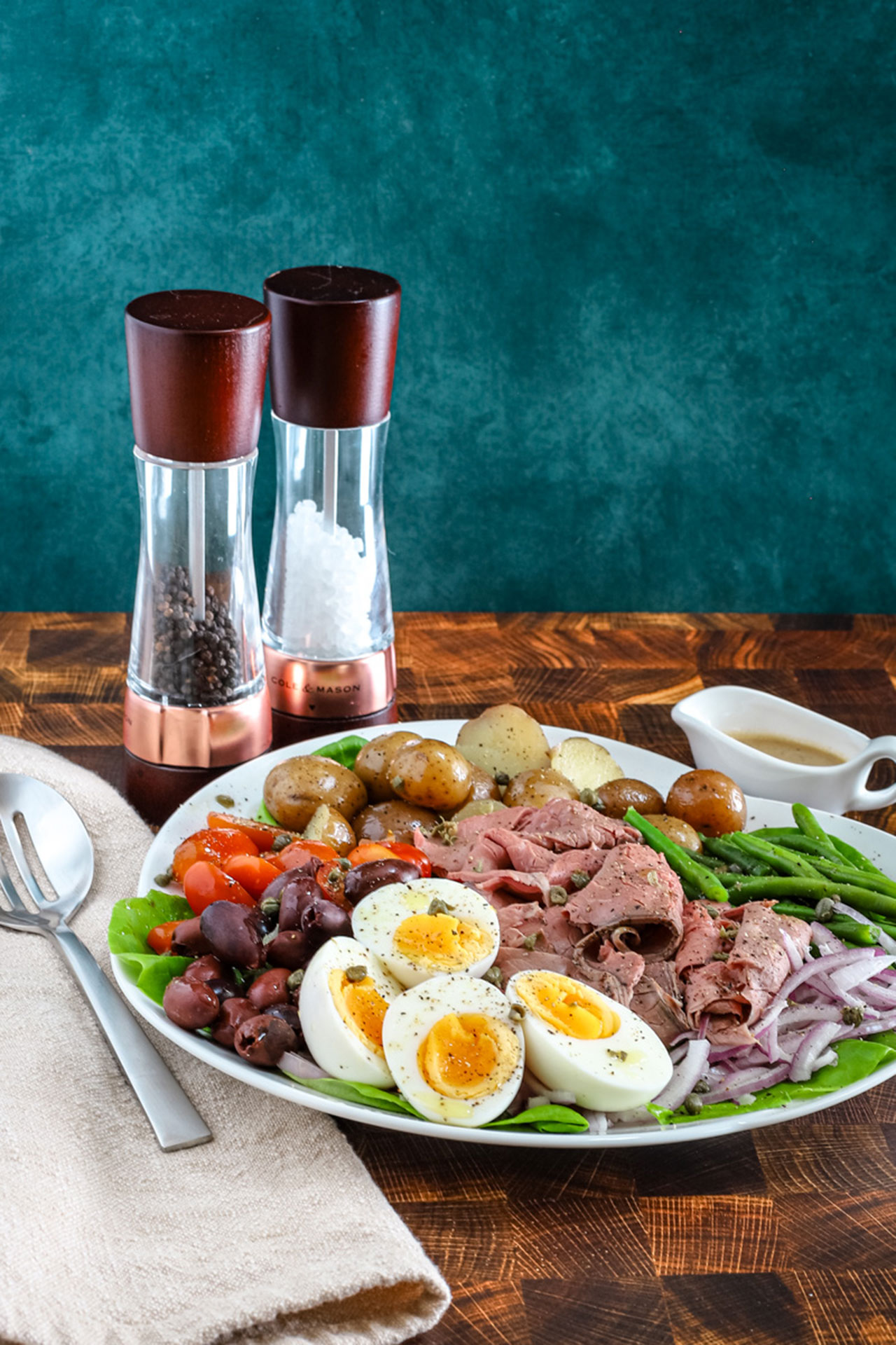 Our roast beef Niçoise salad is our twist on the classic tuna version. With simple ingredients and minimal cooking, our roast beef version is easy, accessible, versatile, and mouthwatering.